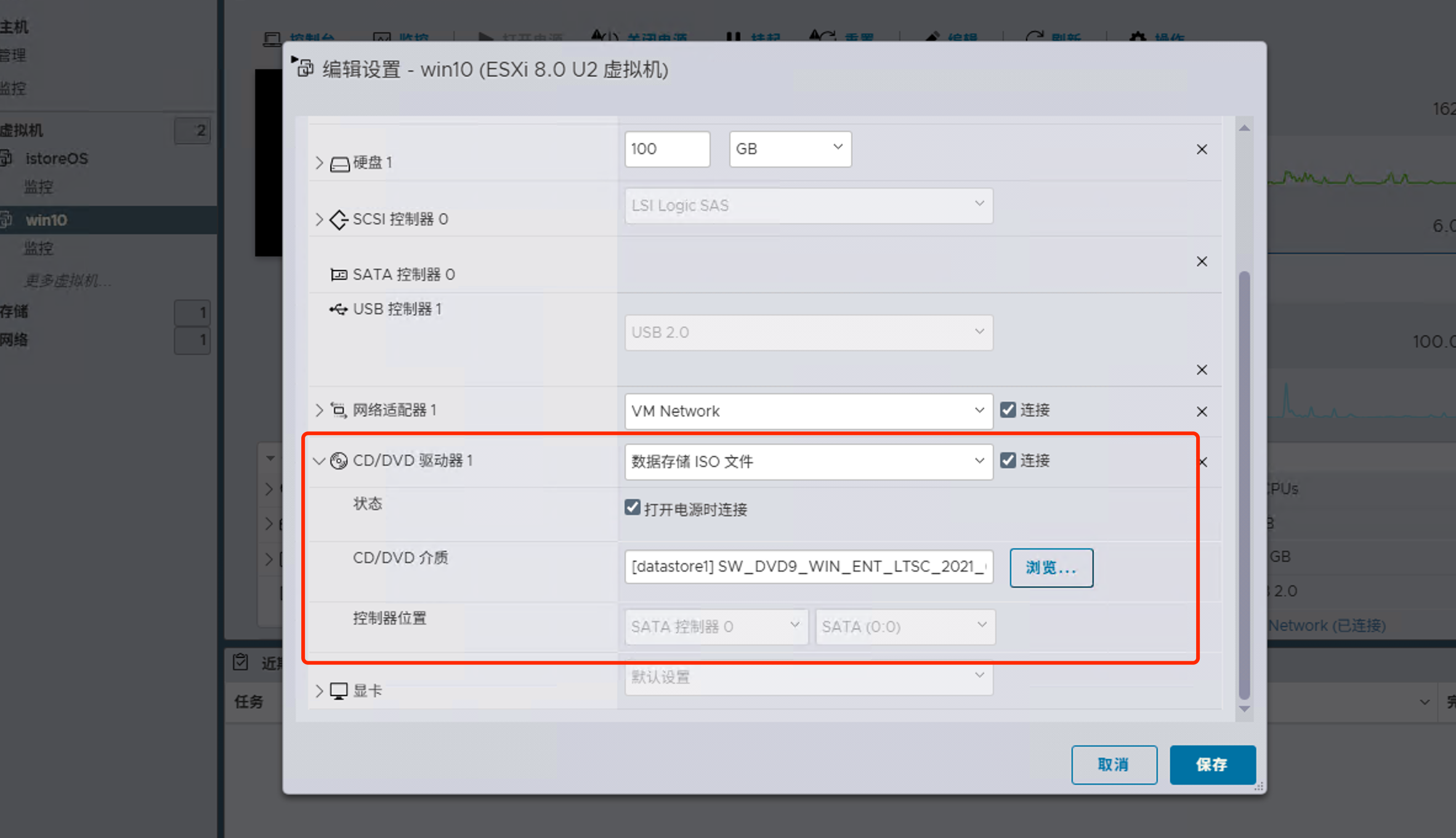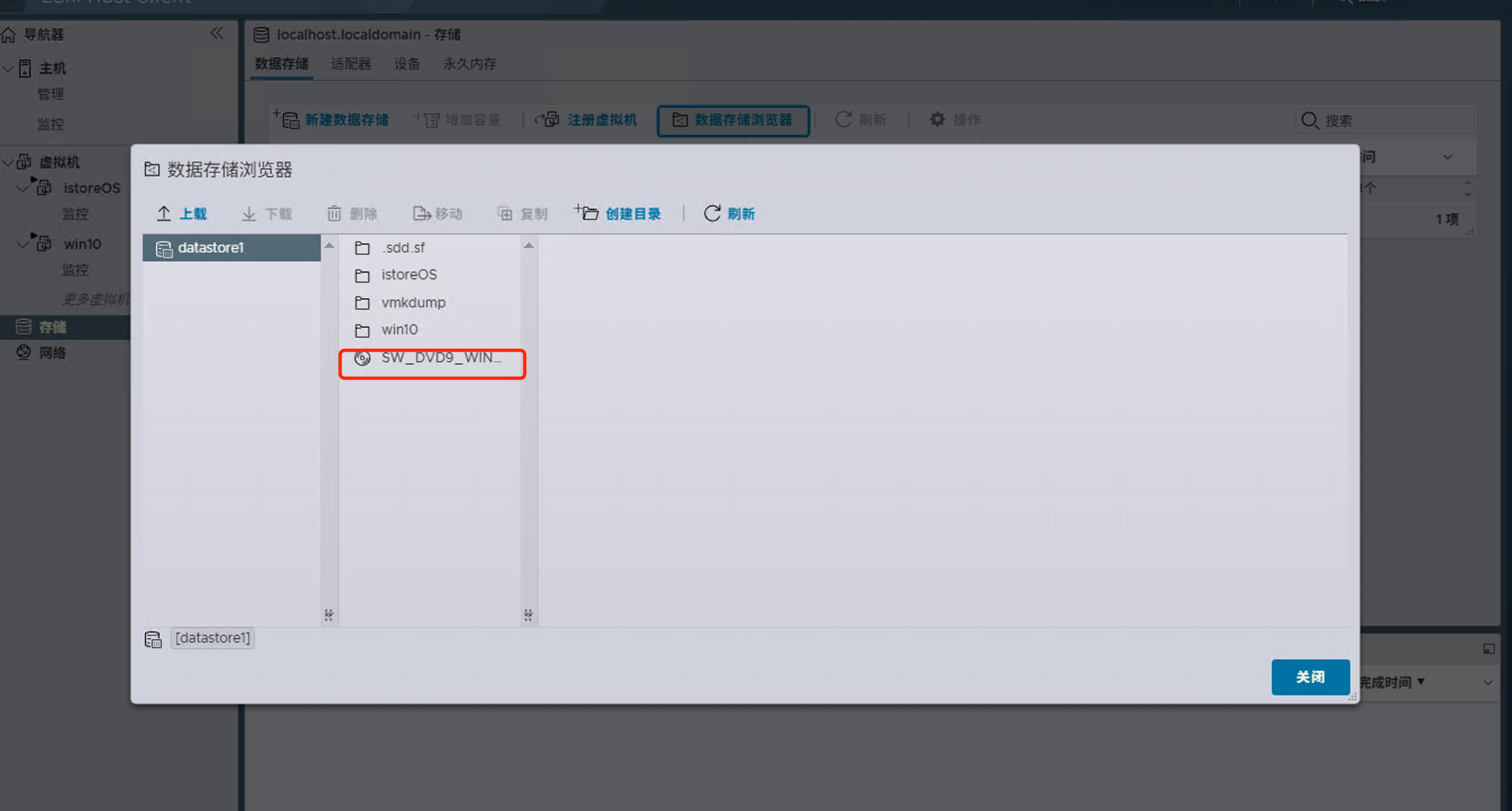 存储 -> 数据存储浏览器 -> 即可进行文件管理,如图红框内容就是我上传的win10系统镜像。谨慎删除操作 谨慎删除操作 谨慎删除操作虚拟机启动,如果报错,请检查自定义配置里预留所有客户机内存是否勾选