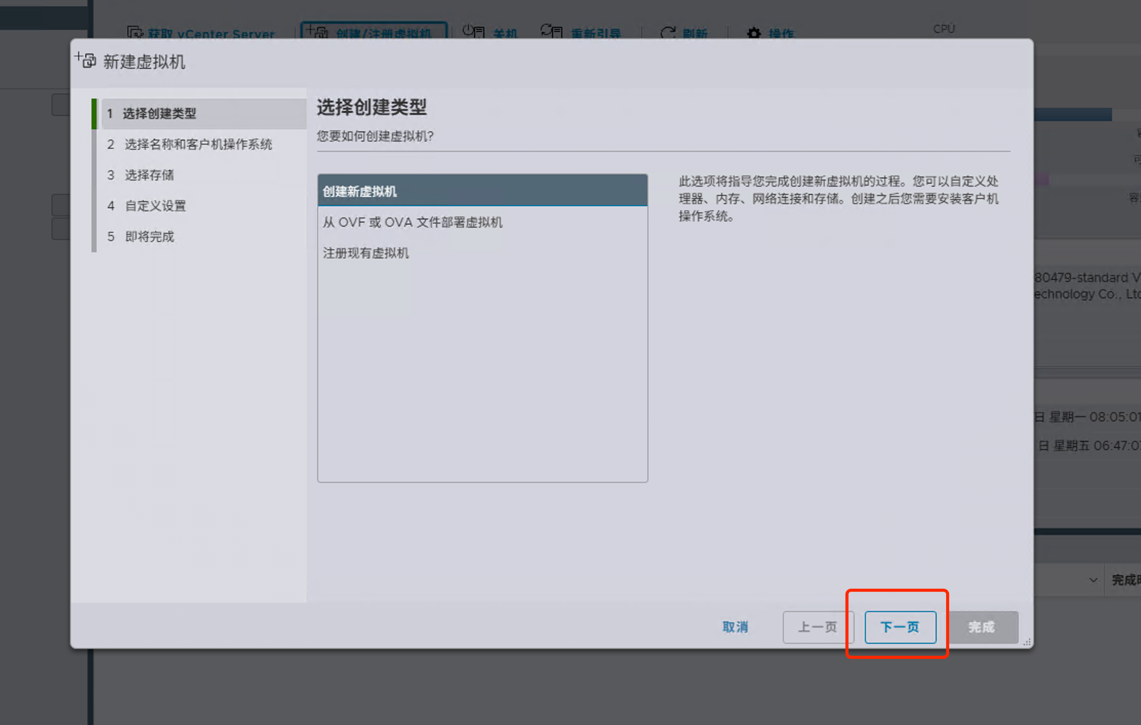 登录 ESXi Web Client,在左侧 “主机” 列表中选中目标 ESXi 主机,点击上方 “创建 / 注册虚拟机”